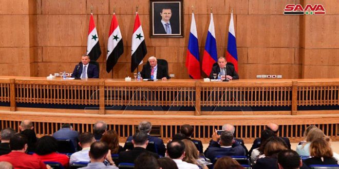 بدوره أكد بوريسوف أن سورية تتعرض للحصار الاقتصادي والعقوبات بما فيها ما يسمى (قانون قيصر) بسبب المواقف غير البناءة للإدارة الأمريكية وحلفائها في أوروبا ونعمل على كسر هذا الحصار.