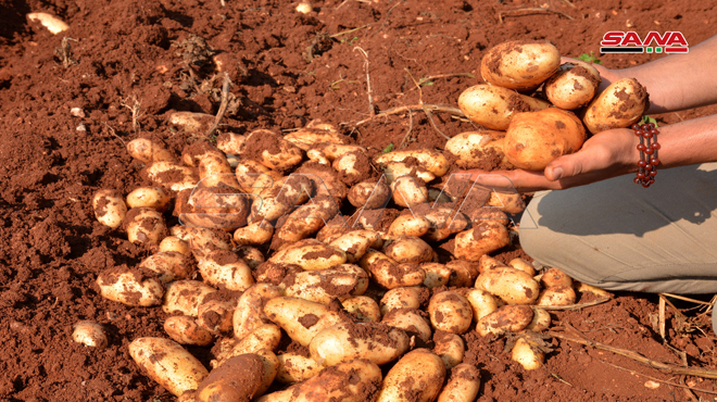يواصل المزارعون في ريف حمص الغربي جني محصول البطاطا للعروة الخريفية رغم الصعوبات التي رافقت عمليات الزراعة في ظل نقص مستلزمات الإنتاج جراء الإجراءات الاقتصادية القسرية المفروضة على الشعب السوري.