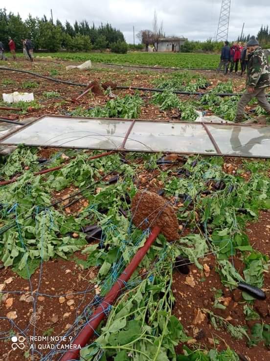 وأوضح شاهين أن اللجان المختصة في مديرية الزراعة باشرت بحصر الأضرار الأولية وهي جسيمة نظراً لغلاء مستلزمات الزراعة المحمية من شرائح النايلون والحديد والشتول.