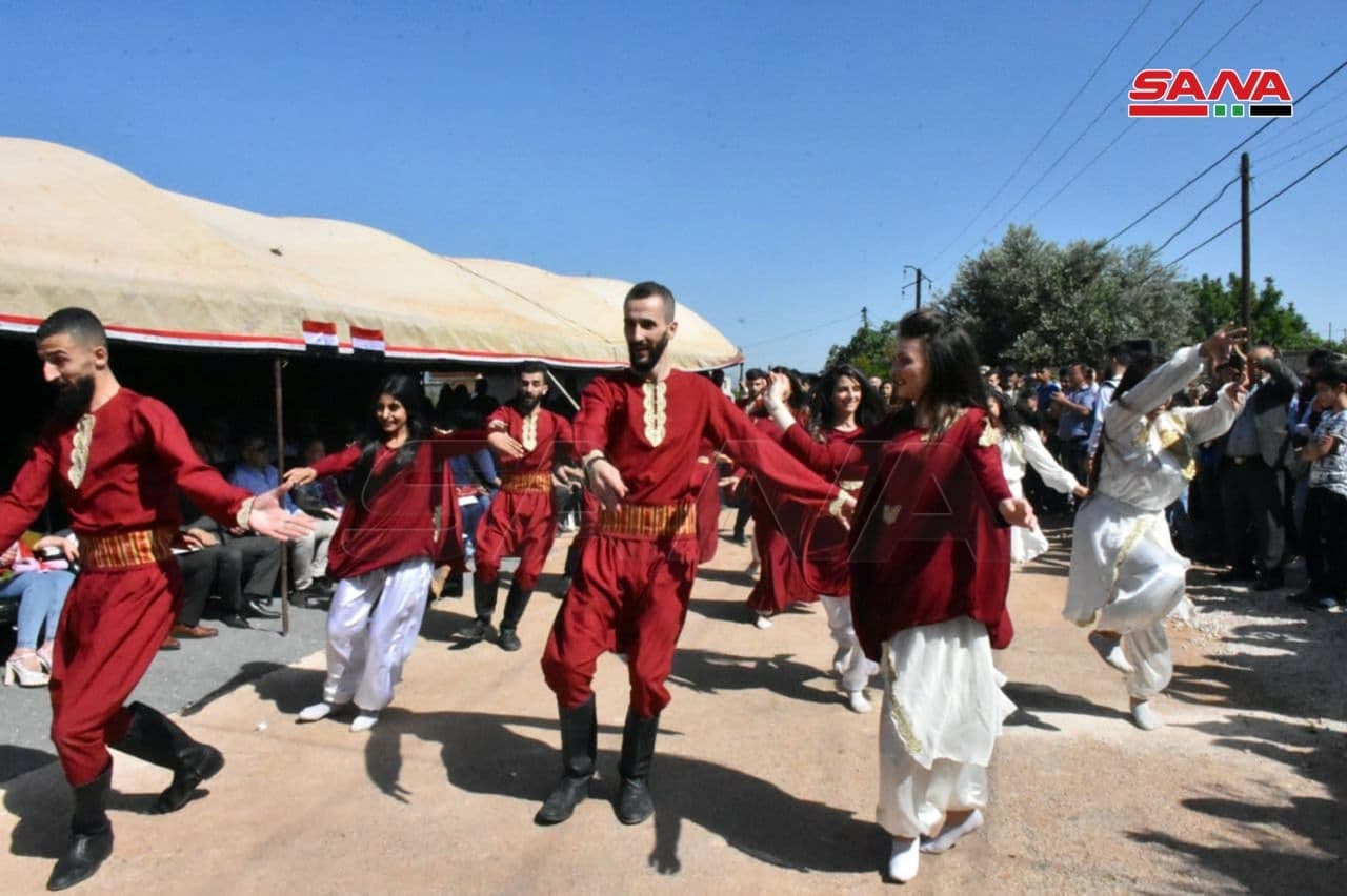 وتخلل المهرجان غناء تراثي أدته إحدى سيدات البلدة بلباسها التقليدي فضلاً عن افتتاح معرض تراثي لسهل الغاب ومعرض الأشغال النسيجية والموجودات التراثية وتصنيع الأشغال اليدوية مع عرض فيديو عن مراحل زراعة الوردة الشامية ورعايتها وتصنيعها وضرورة التوسع في زراعتها وجدواها الاقتصادية.