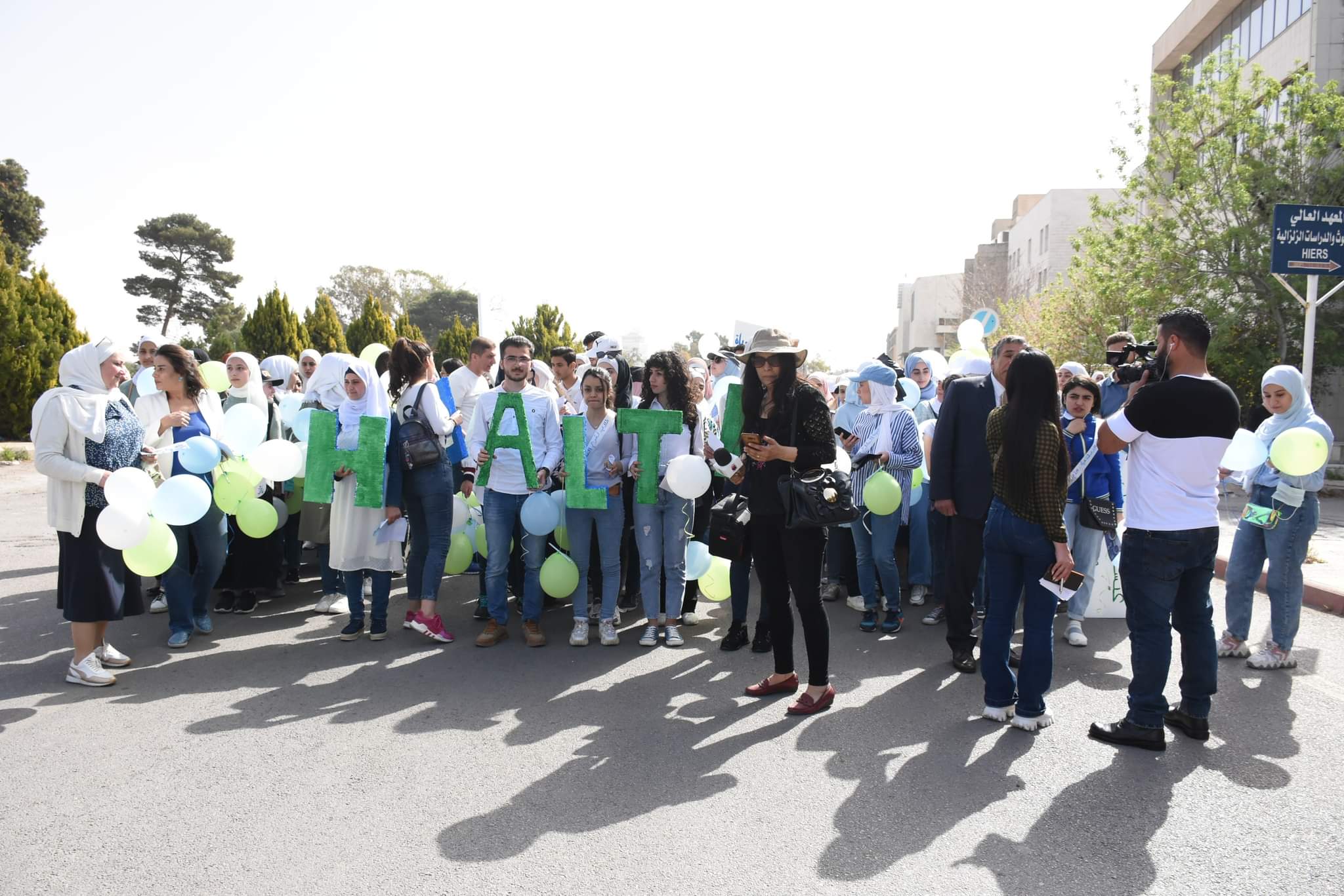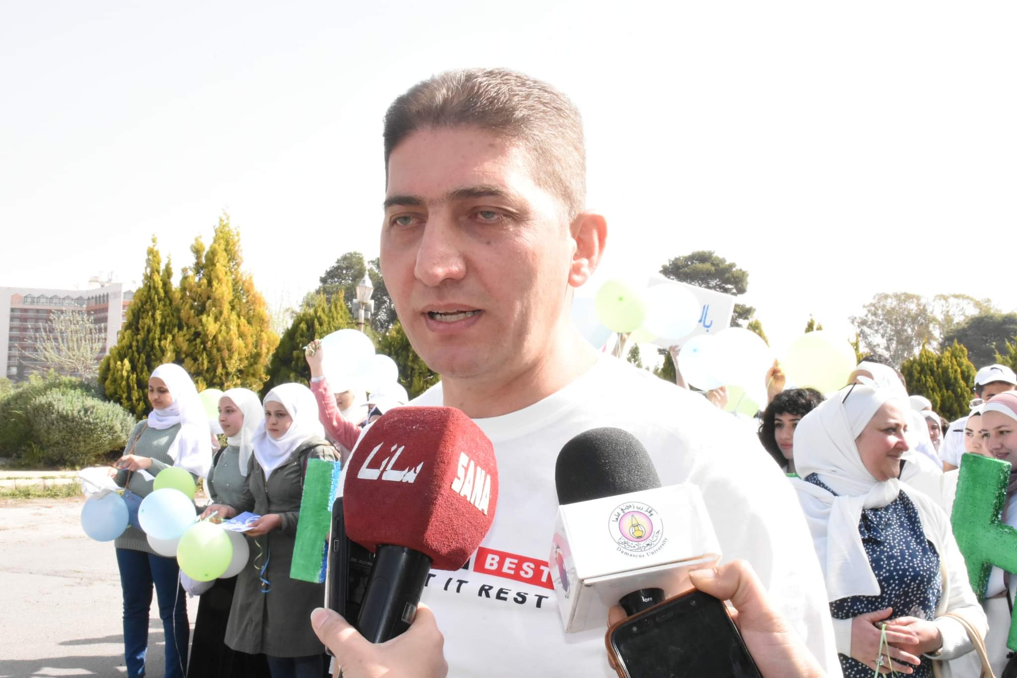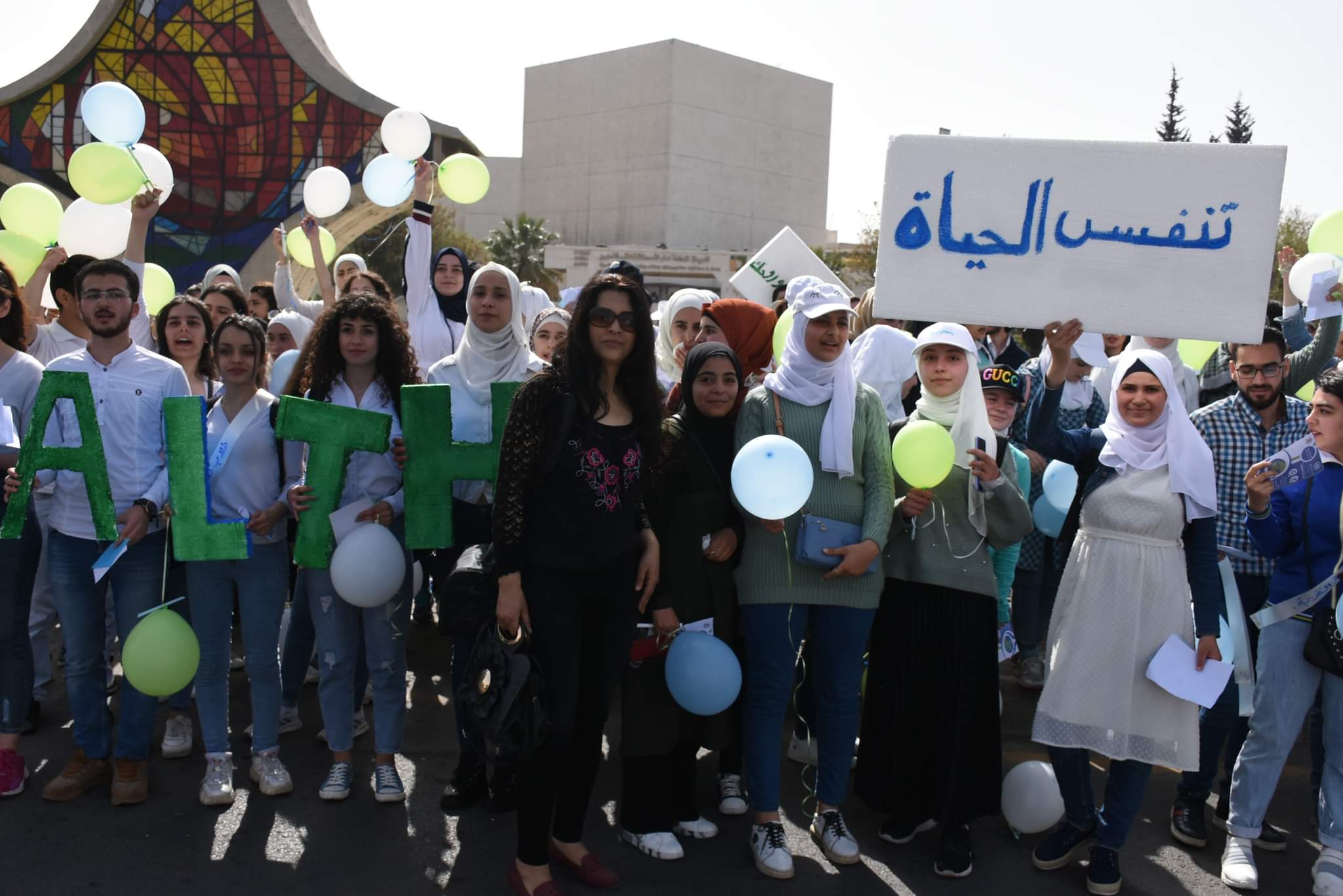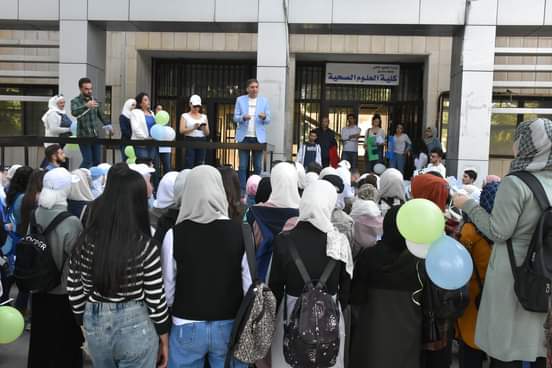 بمناسبة يوم الصحة العالمي المصادف يوم 7 نيسان نظمت كلية العلوم الصحية بجامعة دمشق ماراثون صحي رياضي تثقيفي تحت “شعار كوكبنا صحتنا” بمشاركة طلاب الكلية من جميع أقسام الكلية حاملين لافتات مكتوب عليها شعارات صحية توعوية، ورددوا هتافات تحث على أهمية الرياضة والنظافة من أجل حياة صحية.