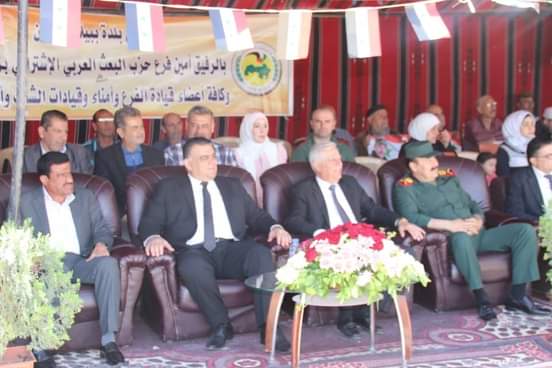 حضر الاحتفالية عضو قيادة الفرع الرفيق #أحمد_عريشة وعضو مجلس الشعب الأستاذ #حكمت_العزب ورئيس مجلس المحافظة ونائب رئيس المكتب التنفيذي وحشد من الفعاليات الثقافية والأهلية والدينية