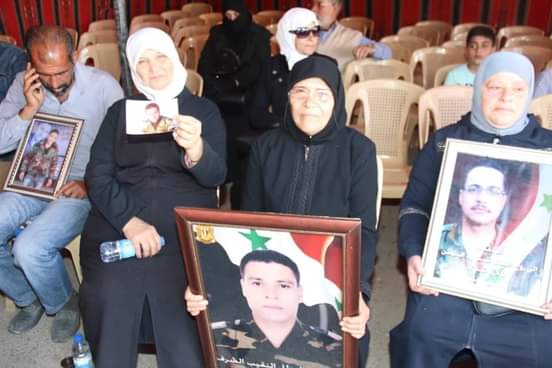كما تم القاء كلمة لذوي الشهداء اكدو من خلالها اعتزازهم وافتخارهم بشهادة ابنائهم فداء لسورية مضيفين أن ما قدموه من تضحيات لم يذهب هدرا حيث تحقق النصر لسورية، وأكد اهالي الشهداء استمرار وقوفهم مع جيش سورية وقائد سورية السيد الرئيس بشار الاسد حتى تحرير كامل التراب السوري.