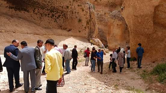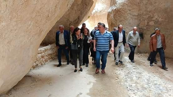 قام محافظ ريف دمشق المحامي صفوان ابو سعدى بجولة ظهر اليوم في مدينة معلولا شملت منطقة “الفج الشرقي” وهو من أهم المعالم الأثرية في المدينة، حيث قدمت له مديرة مركز خدمات السائح في معلولا شرحاً عن أهمية هذا الصرح الأثري لما يحويه من معالم تاريخية وأثرية هامة كالكهوف التي حفرها انسان العصر الحجري والقبور الرومانية المشهورة عالمياً والتي تستقطب مئات الزائرين والسياح، واستمع المحافظ أيضاً إلى معجزة القديسة تقلا التي انشق الجبل لها وعبرت منه إلى الدير وسمّي نسبة لها ( فج مار تقلا ).