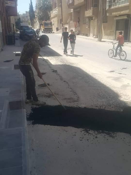 يتابع مجلس مدينة النبك بالتعاون مع المجتمع المحلي تنفيذ مشروع الصيانة الاسفلتية للحفر في الطرقات والشوارع العامة ضمن المدينة.