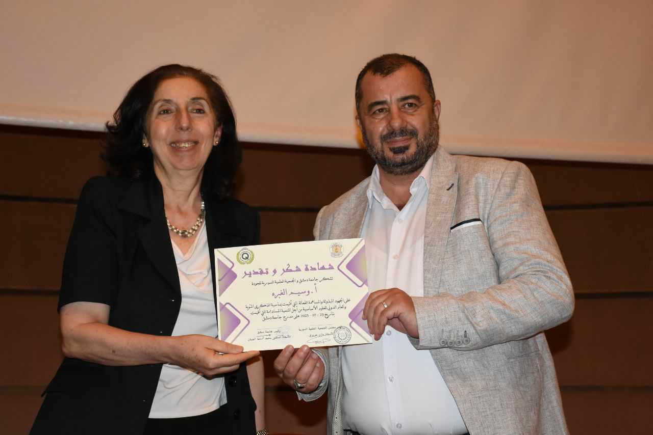 أكد الأستاذ وسيم الغبرة نائب رئيس مجلس إدارة الجمعية العلمية السورية للجودة على أهمية المحاضرات الغنية بالمعلومات المتعلقة بالتنمية المستدامة وعلاقتها بأغلب الاختصاصات العلمية، وعلاقتها بالعلوم الأساسية والتي تناولها اليوم العلمي ” دور العلوم الأساسية في التنمية المستدامة “.