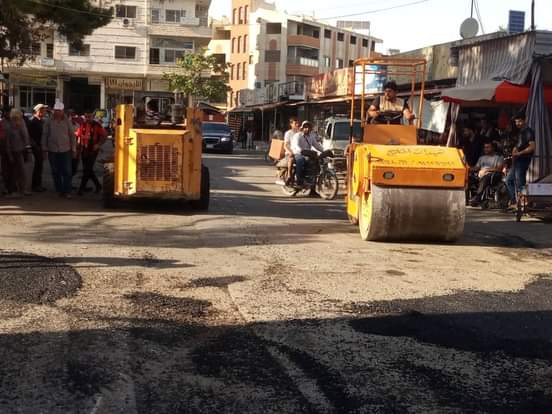 وتم الانتهاء من اعمال الصيانة الاسفلتية في طريق يبرود و طريق المشفى و العمل مستمر في ( الحي الغربي – طريق وحدة المياه -طريق المجمع – ساحة الشهداء – كراجات حمص – سوق الخضرة – شارع النهر – دوار السقي )