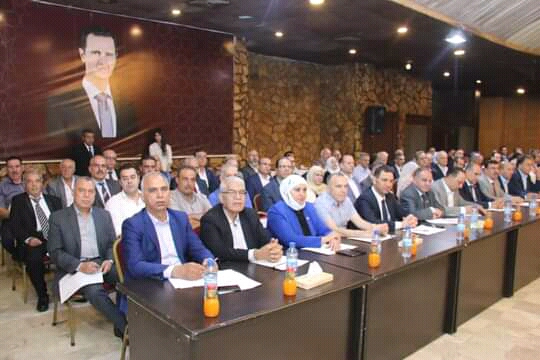 بحضور وزيري الإدارة المحلية والبيئة المهندس حسين مخلوف والإعلام الدكتور بطرس الحلاق ومحافظ ريف دمشق المحامي صفوان ابو سعدى وامين فرع الحزب المهندس رضوان مصطفى