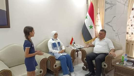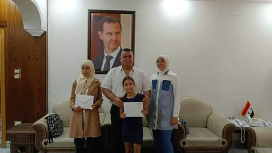 كرم محافظ ريف دمشق المحامي صفوان ابو سعدى ظهر اليوم الطلاب الثلاثة الاوائل من ريف دمشق الفائزين ضمن العشرة الاوائل على مستوى الجمهورية في مسابقة تحدي القراءة الموسم السابع ٢٠٢٣ وهم: