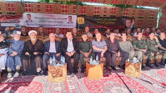 تنفيذاً لمرسوم العفو رقم 7 لعام 2022 وبحضور محافظ ريف دمشق المحامي صفوان ابو سعدى وامين فرع الحزب المهندس رضوان مصطفى وقائد الشرطة اللواء نزار حسن انطلقت صباح اليوم عملية التسوية القانونية بمنطقة قدسيا في قرية دير قانون بريف دمشق وذلك ضمن خيمة وطن بحضور لممثلين عن القيادات العسكرية والأمنية والرسمية وأعضاء مجلس الشعب وفعاليات دينية واهلية وحشد من الأخوة المواطنين.