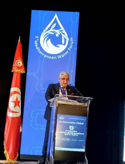 وجميع الشركاء على تنظيم المنتدى المتوسطي الخامس للمياه وما صدر عن *”إعلان تونس”* الذي أكد على حشد الجهود لتنفيذ تدابير التكيف وتعزيز القدرة على الصمود لضمان توافر الموارد المائية للأجيال الحالية والمستقبلية في ظل تغير المناخ ووضع استراتيجيات شاملة للتخفيف من آثار الجفاف والفيضانات وإدارتها بالاعتماد على نظم فعالة للإنذار المبكر وآليات للاستجابة.