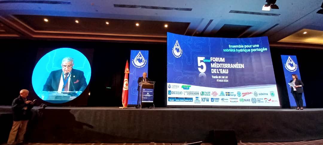 وجميع الشركاء على تنظيم المنتدى المتوسطي الخامس للمياه وما صدر عن *”إعلان تونس”* الذي أكد على حشد الجهود لتنفيذ تدابير التكيف وتعزيز القدرة على الصمود لضمان توافر الموارد المائية للأجيال الحالية والمستقبلية في ظل تغير المناخ ووضع استراتيجيات شاملة للتخفيف من آثار الجفاف والفيضانات وإدارتها بالاعتماد على نظم فعالة للإنذار المبكر وآليات للاستجابة.