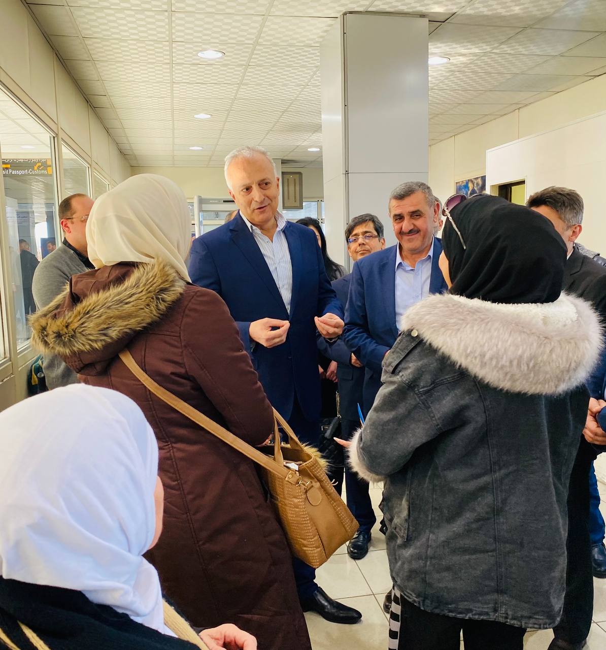 وخلال اجتماع مع المعنيين في الـ.ـمطار أكد الوزير خزّيم دراسة كل مايعزز #تبسيط الاجراءات ويخفف العبء خلال حركة المسافرين داخل المـ،ـطار وعلى متن الـ،ـطائرات ، والتواصل والاشراف الميداني على حسن تنفيذ الأعمال والمشاريع الجارية والخدمات المقدمة، مشدداً على تعاون وتكامل كافة الجهات المتواجدة للوصول إلى تقديم أفضل الخدمات لهذا المرفق الحيوي الهام وللنواقل الجويـ.ـة المختلفة التي تشغّل منه وإليه ضمن الرؤى المستقبلية لزيادة وتوسع حركة التشغيل وتحسين #جودة الخدمات المقدمة في كافة مفاصل عمل هذا القطاع الحيوي المهم ودوره المهم في الحركة الخدمية والاجتماعية والاقتصادية والسياحية ..