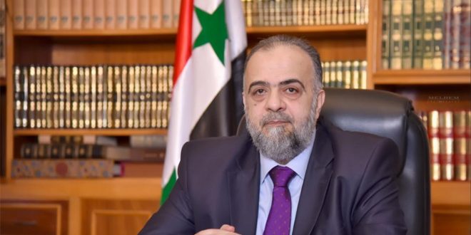 وتقدم وزير الأوقاف باسمه وباسم السادة العلماء وأرباب الشعائر الدينية والعاملين في وزارة الأوقاف ومؤسساتها الدينية والدعوية إلى السيد الرئيس بشار الأسد بأسمى آيات التهاني والتبريك، مقرونة بأخلص مشاعر الود والوفاء لقيادته ولمسيرته الرائدة سائلين الله سبحانه وتعالى أن يسدد خطاه لتبقى سورية عصية على أعدائها، منيعة على المتآمرين للنيل من سلامتها من خلال وحدتها الوطنية المقدسة، والتفاف شعبها المحب خلف قيادته.