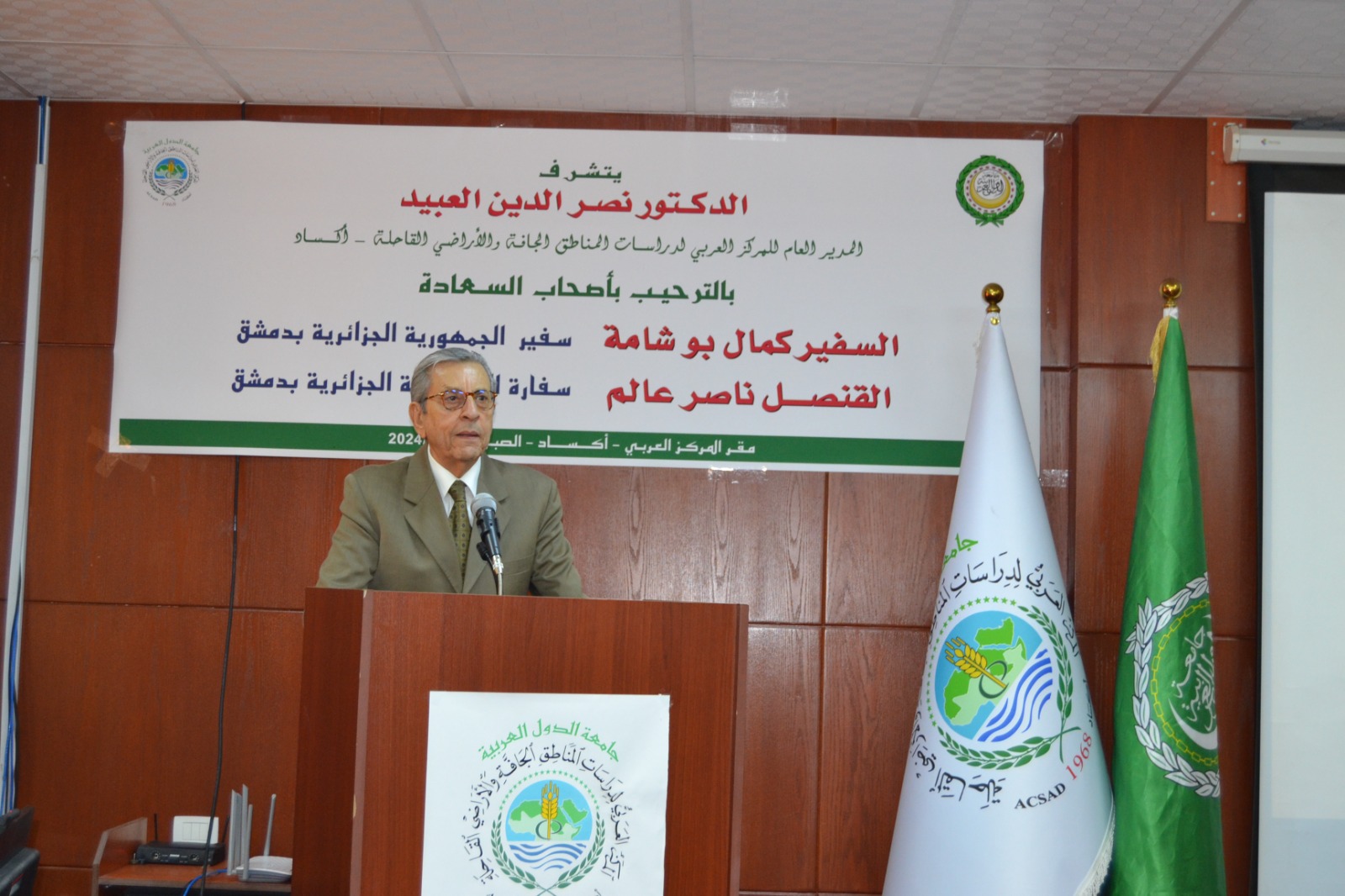 واشاد سعادة سفير الجزائر في دمشق بالدور المهم الذي يؤديه اكساد في المنطقة العربية واصفا اياه *بالطود العظيم في العمل العربي المشترك* من خلال أداء مهامه وتحقيقه قصص نجاح فريدة في تصديه للآثار السلبية للتغيرات المناخية وشح المياه والجفاف، خاصة تميزه في استنباط أصناف من القمح والشعير المتحملة للجفاف ومقاومتها للامراض وذات الغلة المرتفعة، وانتاج الغراس والشتول من الاشجار المثمرة المتأقلمة مع البيئة العربية، وتنمية وتطوير نخيل التمر، والادارة المتكاملة للموارد المائية وفق افضل الطرق العلمية الحديثة، ودراسة أنظمة رعي الإبل وتحسين دخل المربين، والعمل على تنمية المراعي الصحراوية والرفع من قدراتها الإنتاجية مؤكدا دعم الجزائر لمسيرة اكساد وتعزيزها.
