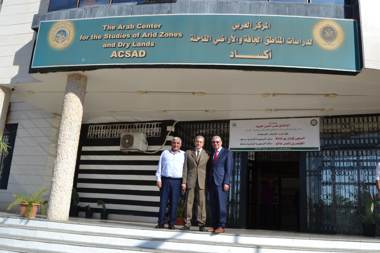 بحث السيد المدير العام لمنظمة المركز العربي لدراسات المناطق الجافة والأراضي القاحلة (أكساد) الدكتور نصر الدين العبيد، مع سعادة سفير الجمهورية الجزائرية الديمقراطية الشعبية بدمشق الأستاذ كمال بو شامة والقنصل الوزير المفوض ناصر عالم ، واقع التعاون القائم بين أكساد والجزائر، وسبل تعزيزه وتطويره في مختلف المجالات ذات الاهتمام المشترك.