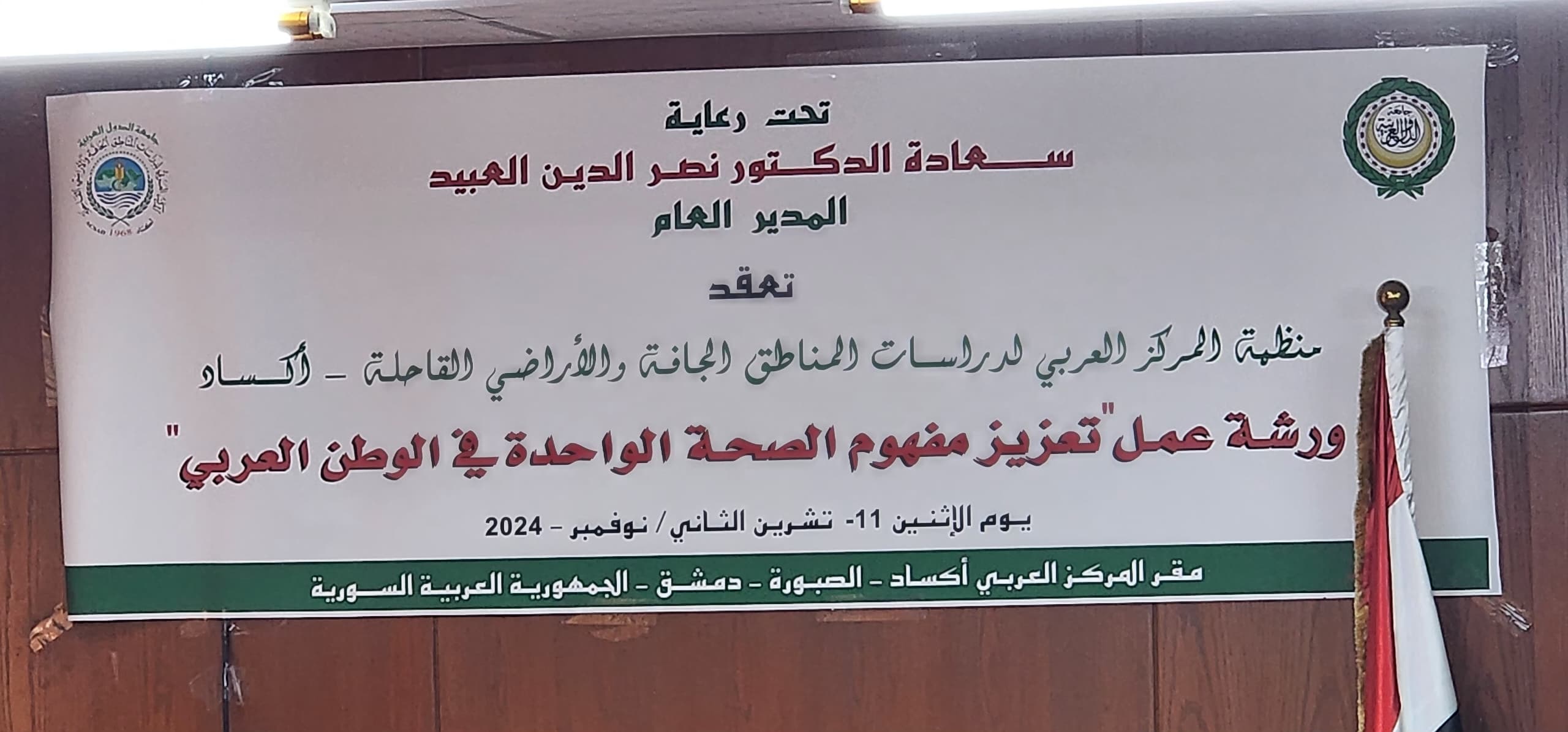 تحت رعاية سعادة الدكتور نصر الدين العبيد مدير عام منظمة المركز العربي لدراسات المناطق الجافة والأراضي القاحلة “أكساد”، افتتحت الإثنين 11 تشرين الثاني 2024 في مقر المنظمة بالصبورة ورشة عمل بعنوان “تعزيز مفهوم الصحة الواحدة في الوطن العربي” ضمن جهوده المستمرة لتعزيز الأمن الغذائي والصحي في المنطقة العربية، بمشاركة 15 دولة عربية واجنبية وعدد كبير من المنظمات الإقليمية والدولية المهتمة في هذا المجال عبر تقنية “Zoom”، وعدد من الباحثين والاختصاصيين من وزارات الصحة والزراعة والثروة الحيوانية.
