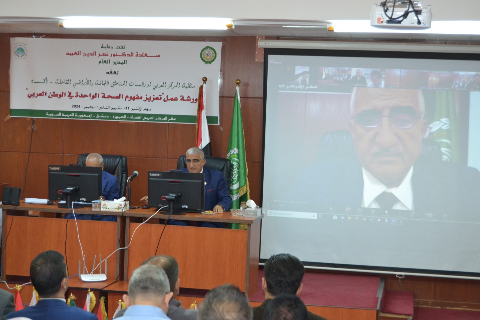 تحت رعاية سعادة الدكتور نصر الدين العبيد مدير عام منظمة المركز العربي لدراسات المناطق الجافة والأراضي القاحلة “أكساد”، افتتحت الإثنين 11 تشرين الثاني 2024 في مقر المنظمة بالصبورة ورشة عمل بعنوان “تعزيز مفهوم الصحة الواحدة في الوطن العربي” ضمن جهوده المستمرة لتعزيز الأمن الغذائي والصحي في المنطقة العربية، بمشاركة 15 دولة عربية واجنبية وعدد كبير من المنظمات الإقليمية والدولية المهتمة في هذا المجال عبر تقنية “Zoom”، وعدد من الباحثين والاختصاصيين من وزارات الصحة والزراعة والثروة الحيوانية.