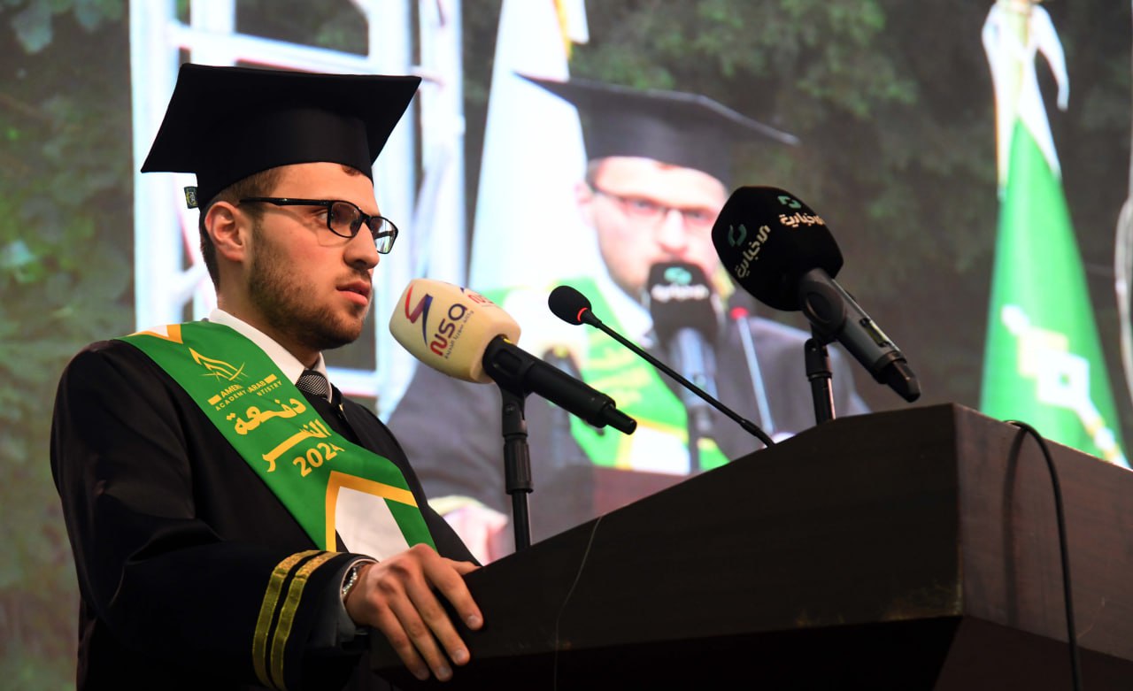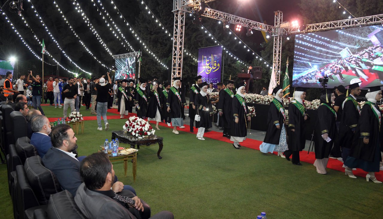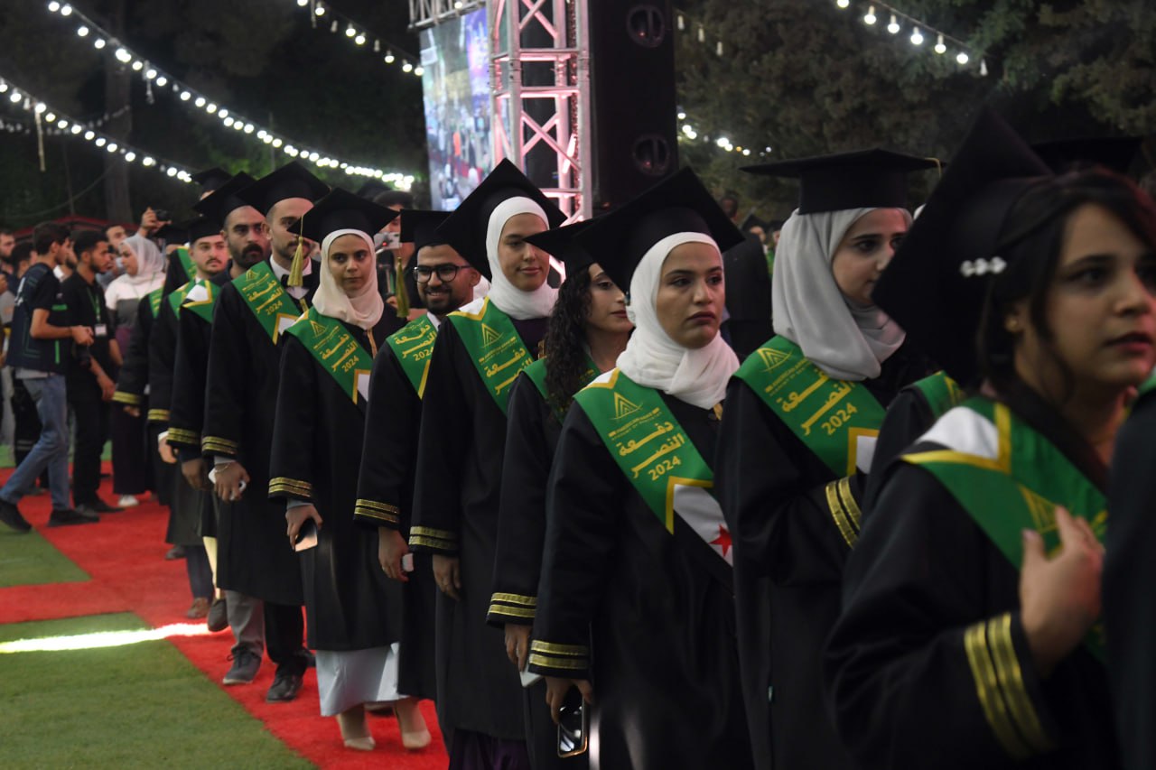 وفي كلمة الخريجين لفت كل من الدكتور هادي صبح والدكتورة مريم الحمصي من كلية طب الأسنان إلى أن الوصول إلى يوم التخرج بحد ذاته انتصار، وأن الخريجين اليوم يقفون على أعتاب مرحلة جديدة، يحملون على عاتقهم أمانة عظيمة، ومسؤولية جسيمة، فبعد سنوات من الدراسة والتحصيل، أصبحوا اليوم، جاهزين لخدمة مجتمعهم، والمساهمة في بناء سوريا الحرة الأبية.