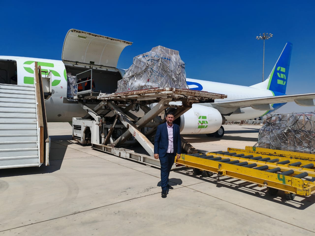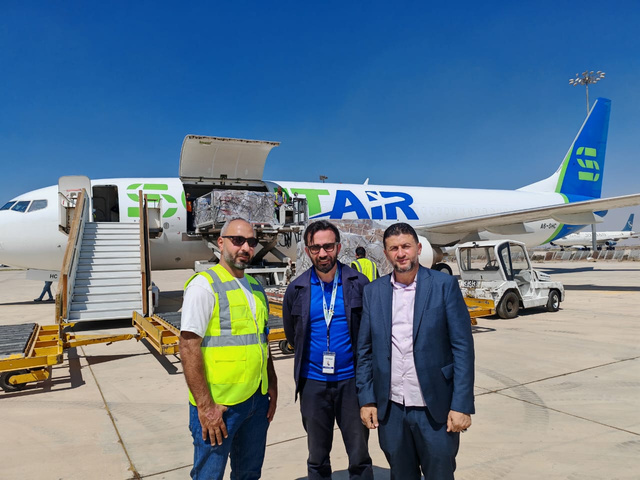 وصلت إلى مطار دمشق الدولي اليوم أول طائرة شحن تجارية من دولة الإمارات العربية المتحدة، (سوليتير)، بعد انقطاع دام أكثر من 15 عامًا من الامارات، والطائرة محملة ب 20 طن من البضائع التجارية المتنوعة، لزوم احتياجات السوق السورية.