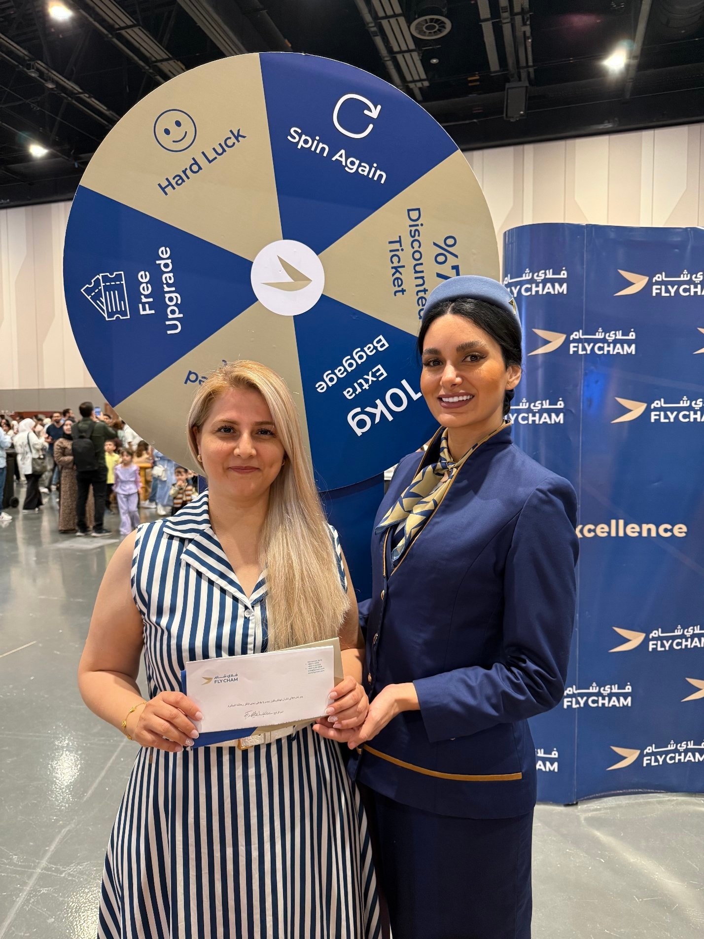 تحت عنوان “الإمارات تُحب سورية” شاركت فلاي شام بهذا الحدث المميز بتاريخ 22 نوفمبر 2025، والذي أقيم في مركز دبي للمعارض ” Expo Dubai”، حيث تخلل الفعالية مسابقات على العديد من الجوائز المختلفة للحضور مثل تذاكر طيران مجانية وحسومات، إضافة إلى مزايا وجوائز عديدة.