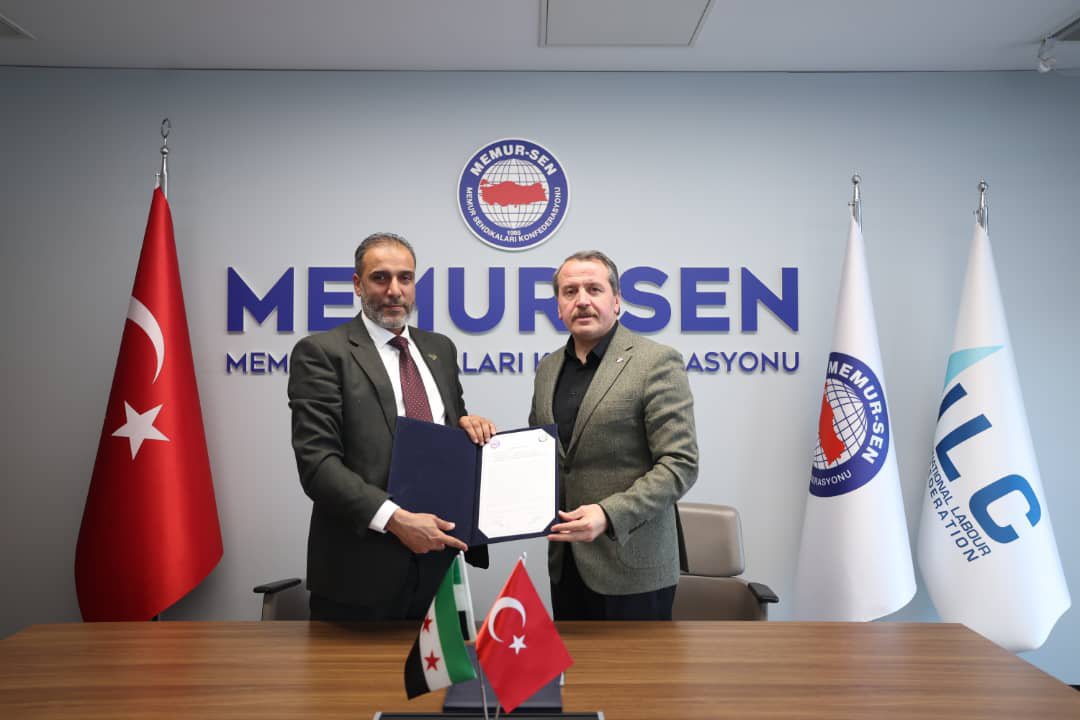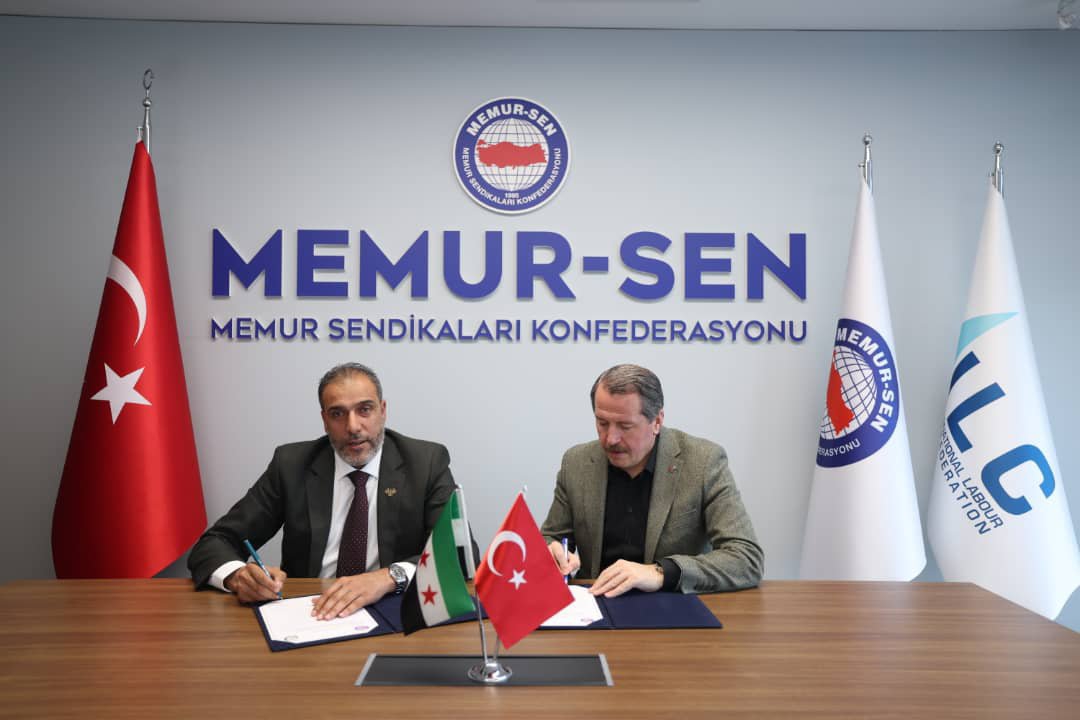 وفي ختام اللقاء، تم توقيع اتفاقية تعاون مشترك بين اتحاد نقابات موظفي القطاع العام التركي (MEMUR-SEN) والاتحاد العام لنقابات العمال في الجمهورية العربية السورية، تهدف إلى إقامة علاقات ثنائية قائمة على الممارسة النقابية المستقلة، واحترام الحقوق والحريات النقابية، وبناء شراكة طويلة الأمد تقوم على المنفعة المتبادلة والمساواة.
