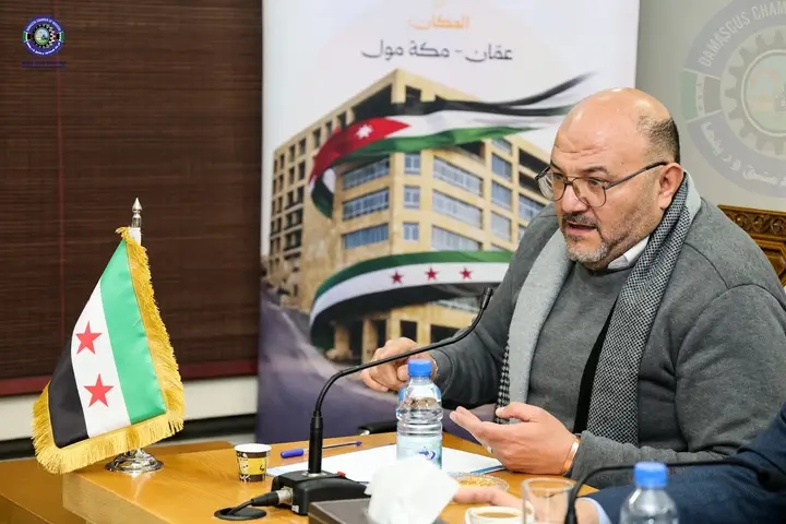 المهندس محمد أيمن المولوي أعلن خلال اللقاء أن الغرفة دشنت مرحلة جديدة من التوسع الدولي عبر إطلاق سلسلة معارض خارجية تحت مسمى “سيريكس” مؤكداً أن العاصمة الأردنية عمان تم اختيارها لتكون أول محطة خارجية تحت هذا المسمى للمنتج السوري، مشيراً إلى أن الغرفة تتحرك في إطار تناغم تام مع التوجهات الرسمية، والتنسيق الكامل بكافة أشكاله مع الجهات الحكومية الرسمية في المملكة الأردنية الهاشمية، لضمان دخول الصناعيين والبضائع السورية بيسر وسهولة، وبما يخدم مصلحة الطرفين.