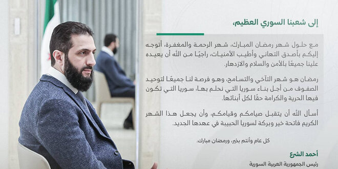 الرئيس الشرع في كلمة أمام القمة العربية غير العادية في القاهرة: سوريا ستبقى إلى جانب الشعب الفلسطيني ولا يمكن القبول باقتلاعه من أرضه 04/03/2025
