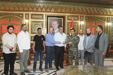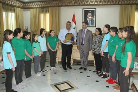 بانوراما طرطوس السيد محافظ طرطوس المحامي صفوان ابو سعدى يستقبل مدير مدرسة طائر الفينيق مع عدد من الطلاب 14/05/2019