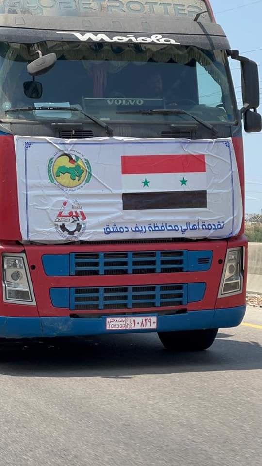 وصول قافلة مساعدات إغاثية من محافظة ريف دمشق الى اهلنا المتضررين من الزلزال المدمر في مدينتي اللاذقية وجبلة 18/02/2023