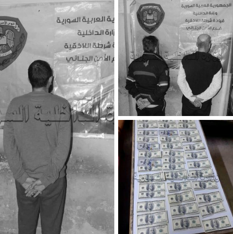 اللاذقية توقيف ثلاثة أشخاص يقومون بترويج العملة الأجنبية المزيفة في اللاذقية وضبط مبالغ مالية مزورة 13/03/2022