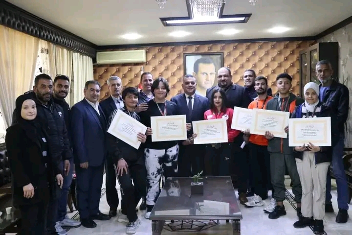 ريف دمشق محافظ ريف دمشق يكرم مجموعة من الرياضيين من أصحاب الانجازات على المستويين العربي والدولي 25/02/2024