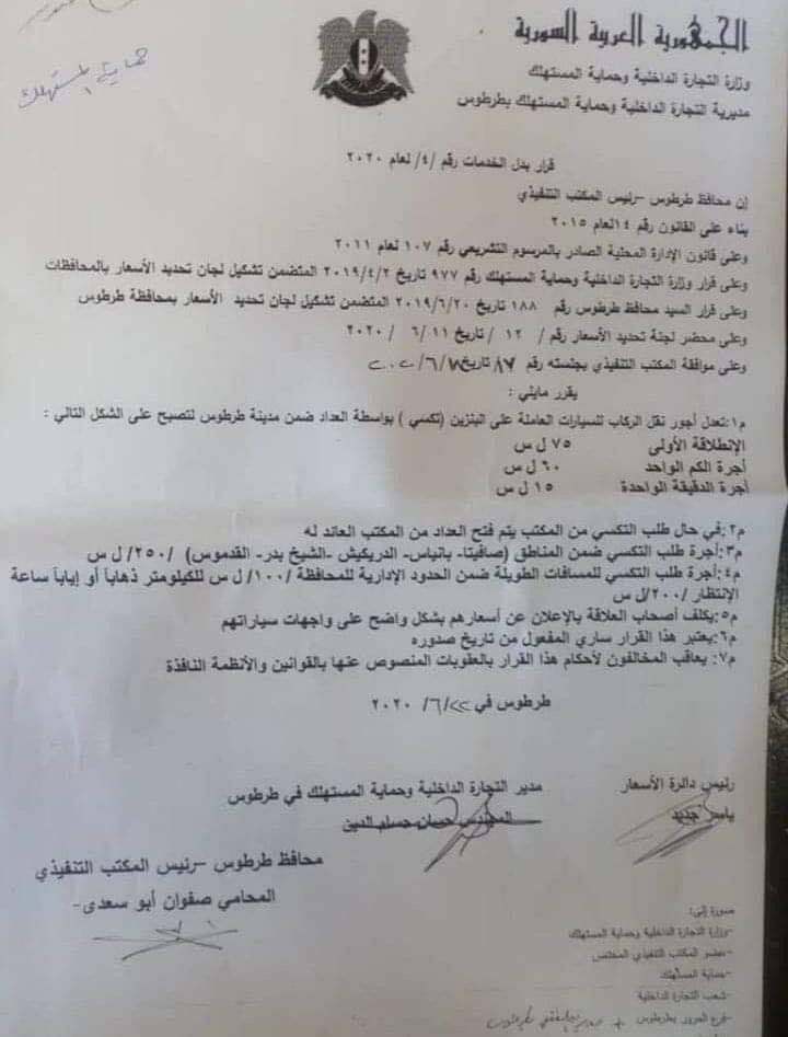 طرطوس 26 ضبط حصيلة الجولة المسائية على المطاعم ومحلات المواد الغذائية والوجبات السريعة في مدينة طرطوس 01/07/2020