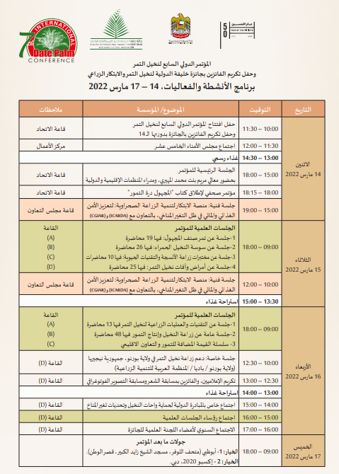 مشاركة هامة لمركز “اكساد” في المؤتمر الدولي السابع لنخيل التمر في أبو ظبي 14 آذار الحالي.. 12/03/2022
